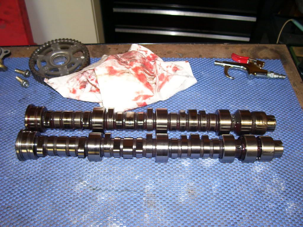 LOL, upgrade guide, remove stock cams, replace cam seals, install 07 TL-S cams, re-adjust valves........