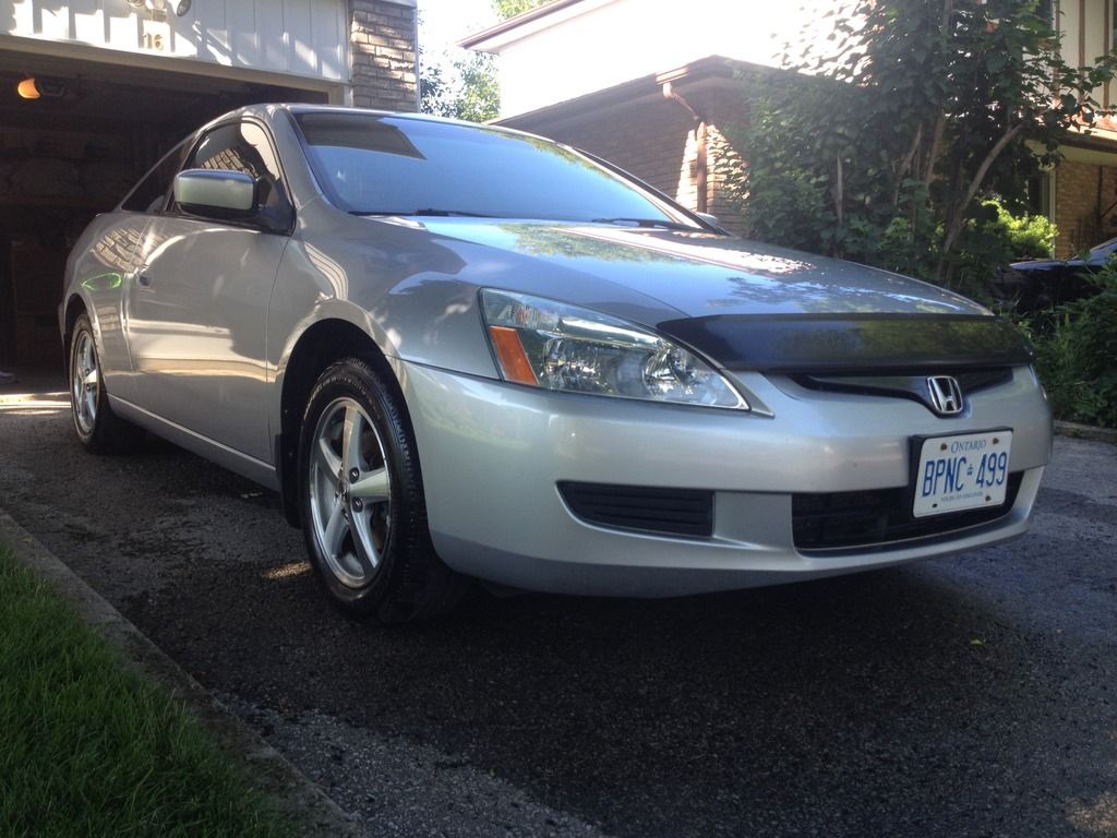 Car has always been in my family new from the dealer in 2003. Mom is the previous owner and this car has been babied. I remember her coming home with the accord 2003 accord brochure all excited about what extra add-ons to put on her car. Over the years that my family has owned the accord I have tried to bath it once every month at least, even in our canadian winters. Have to keep that road salt off. I really like my car.