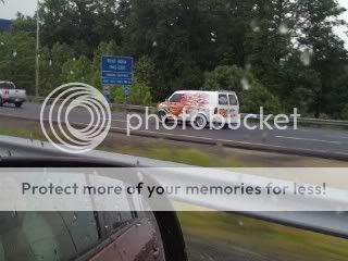 This van is hott... Yes, those are flames all down the sides and back with chrome spoke wheels(saw this thing on 95 leaving DC)